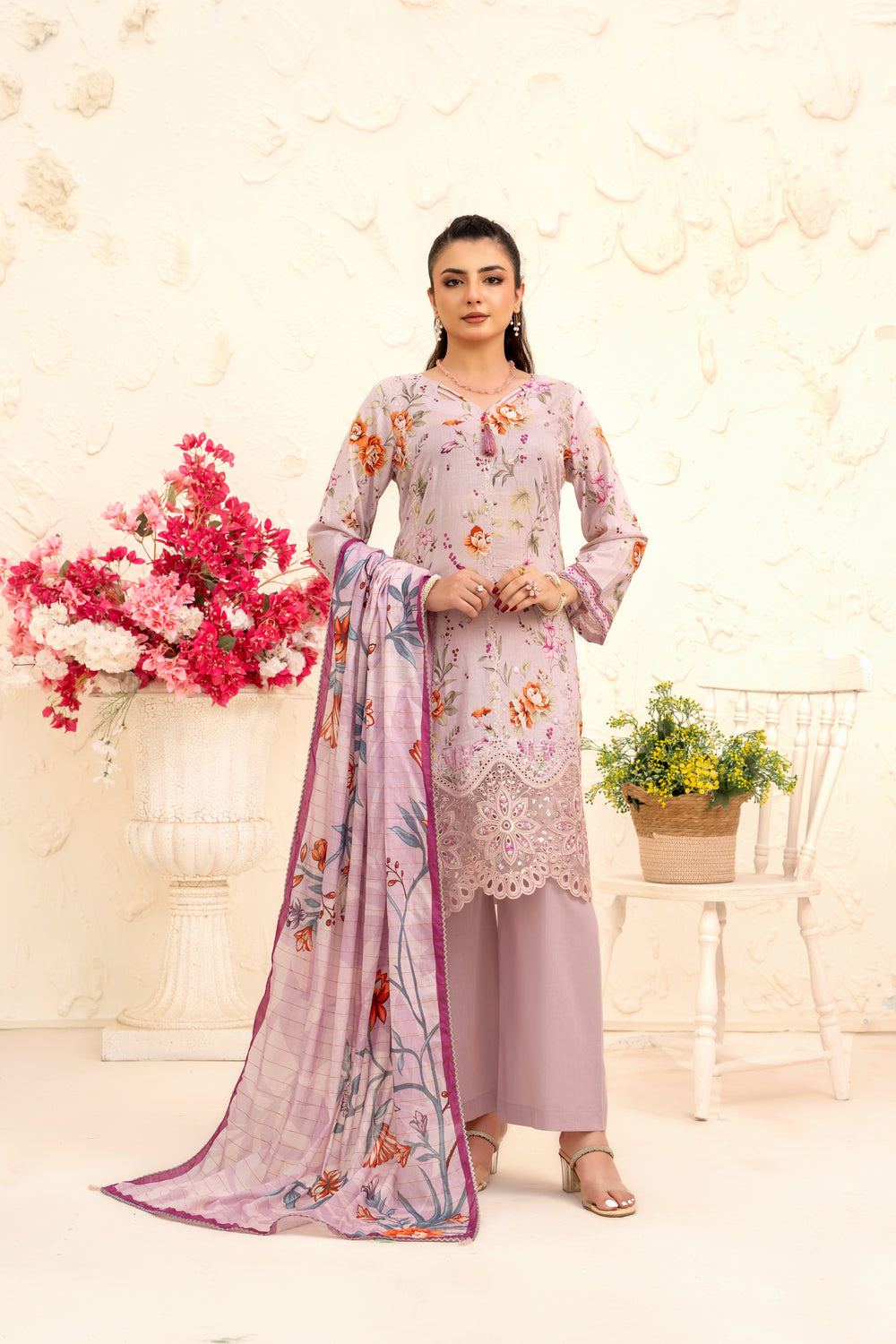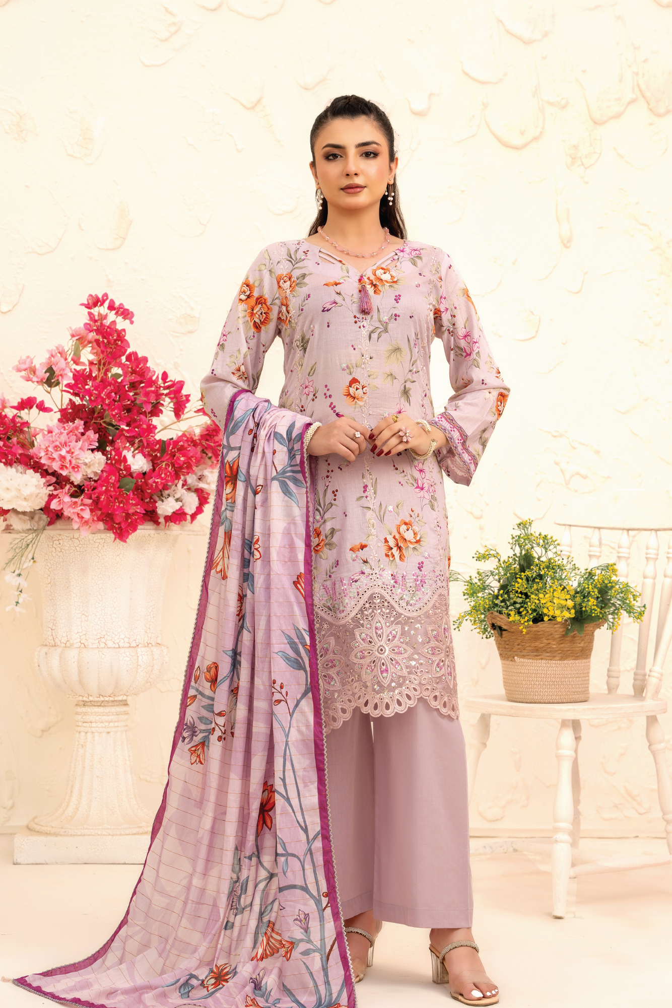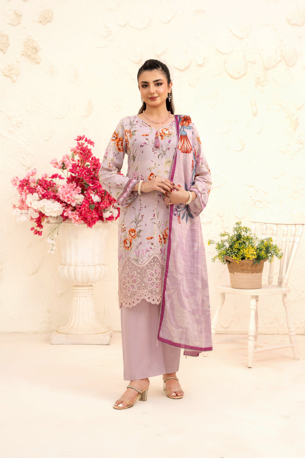 Romantic mauve tones paired with delicate floral work — feminine, flowy, and flattering. Designed to turn everyday moments into elegant memories.