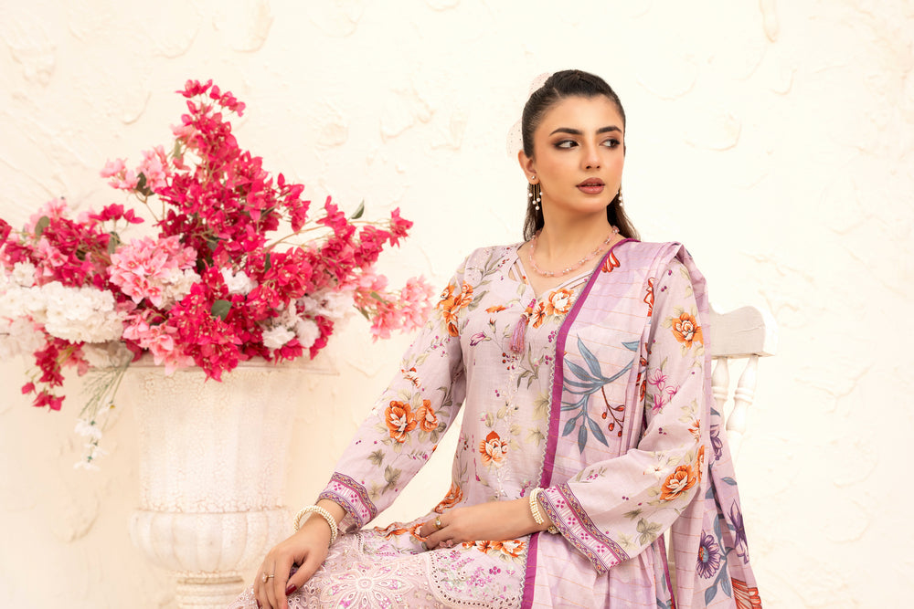 - Printed Shirt With Embroidered Daman - 3.00 M