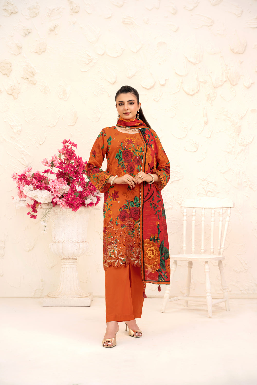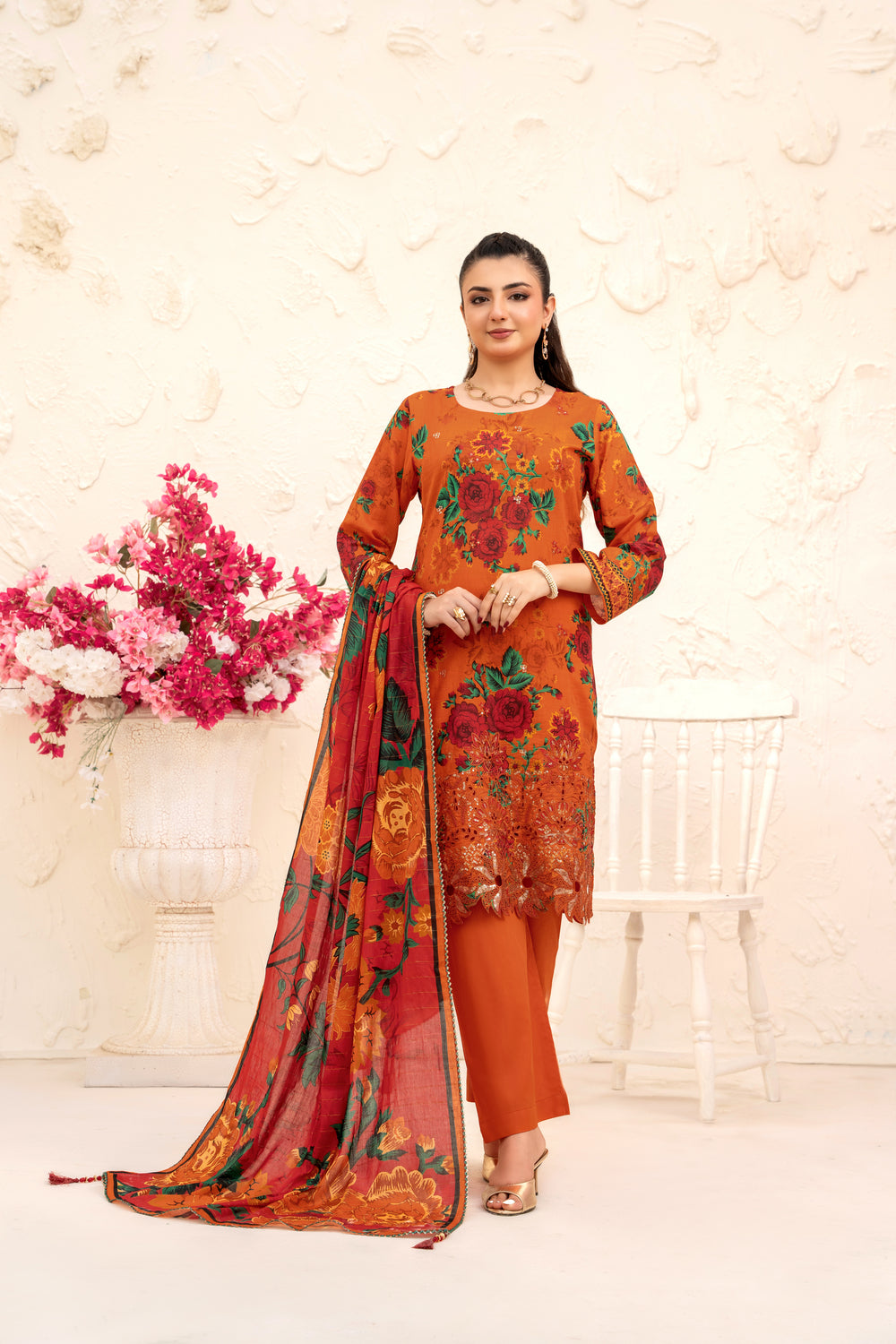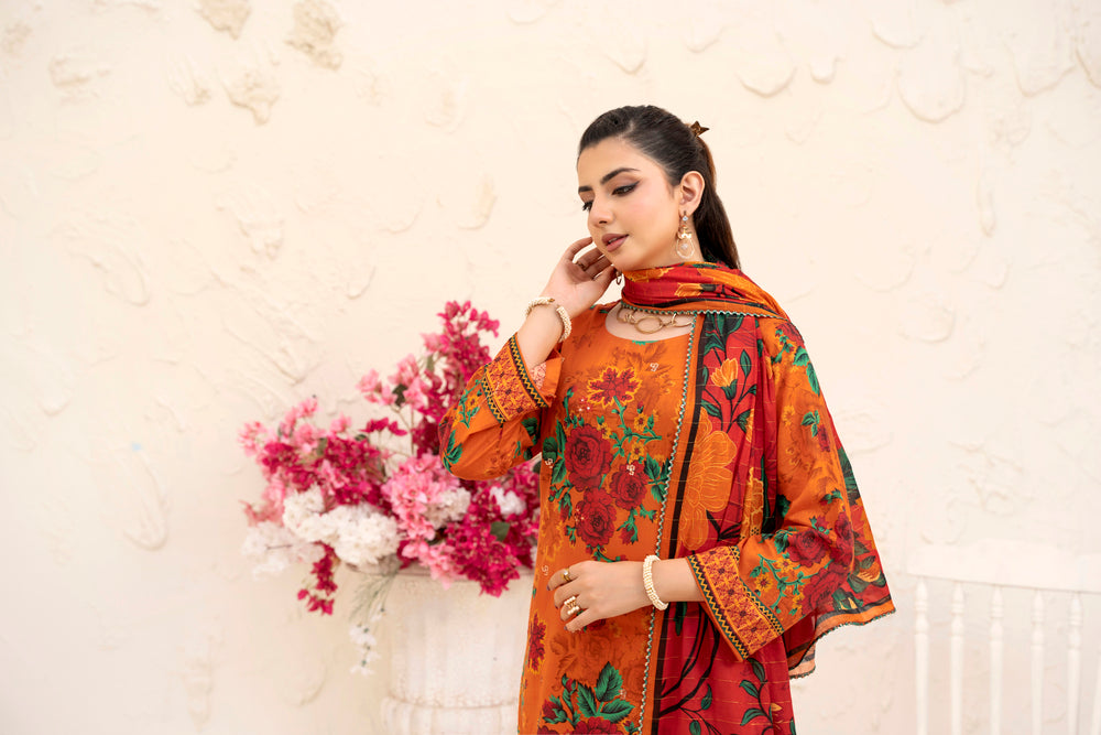 - Printed Shirt With Embroidered Daman - 3.00 M