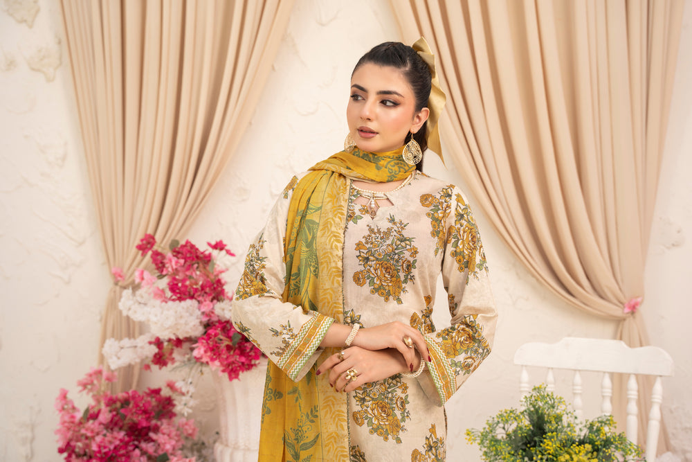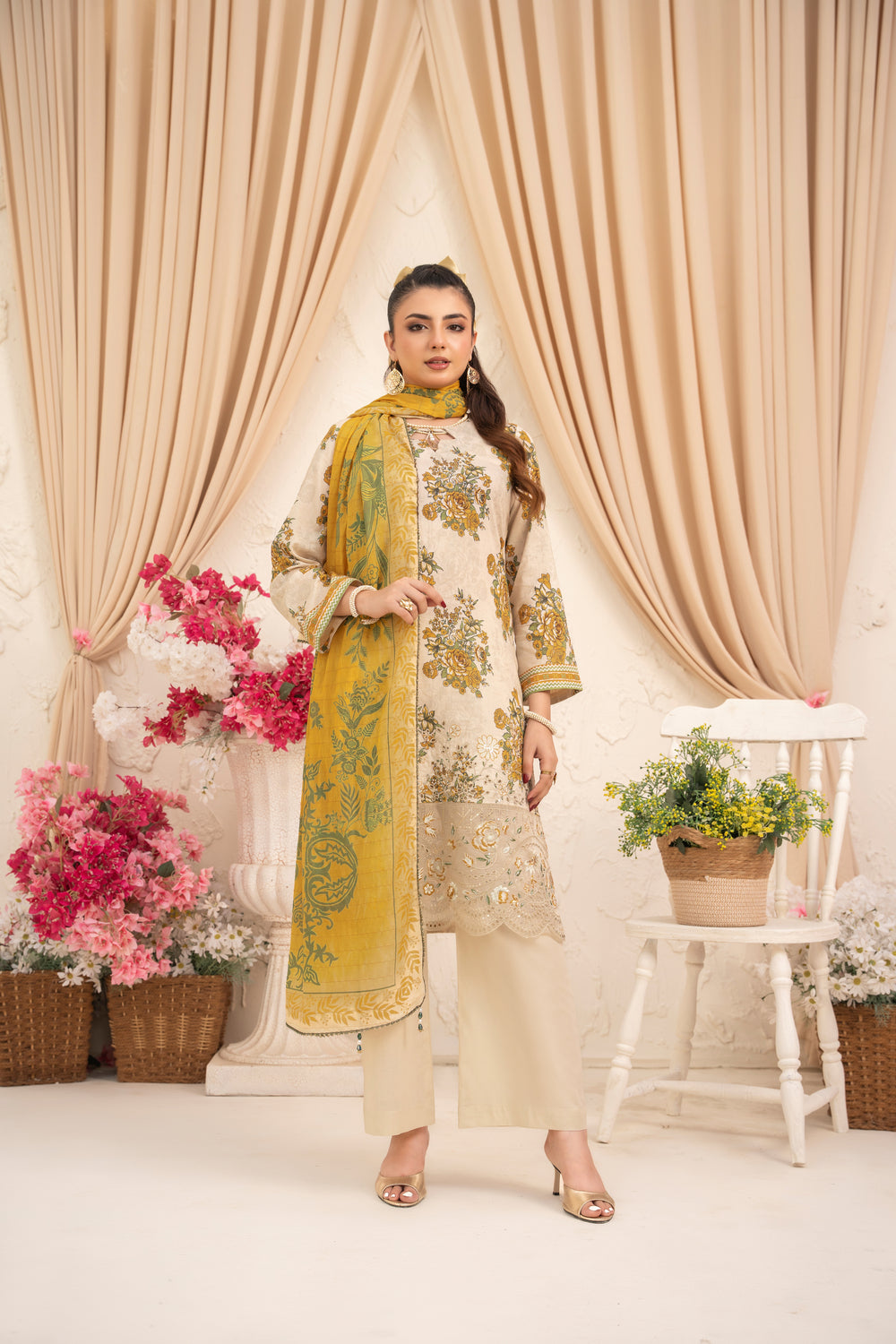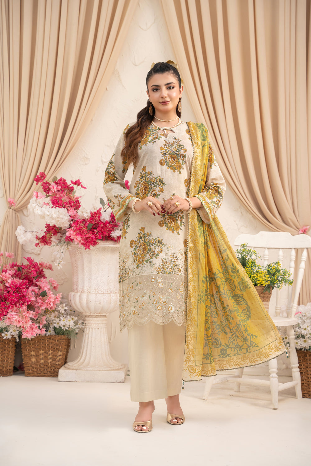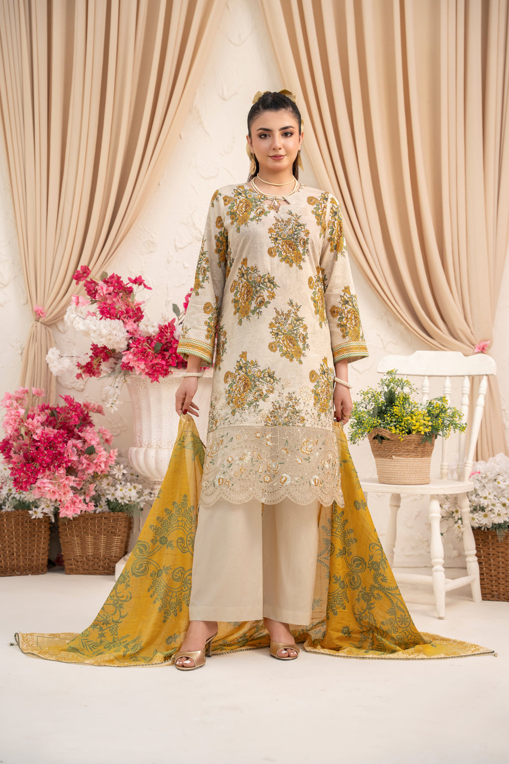 - Printed Shirt With Embroidered Daman - 3.00 M