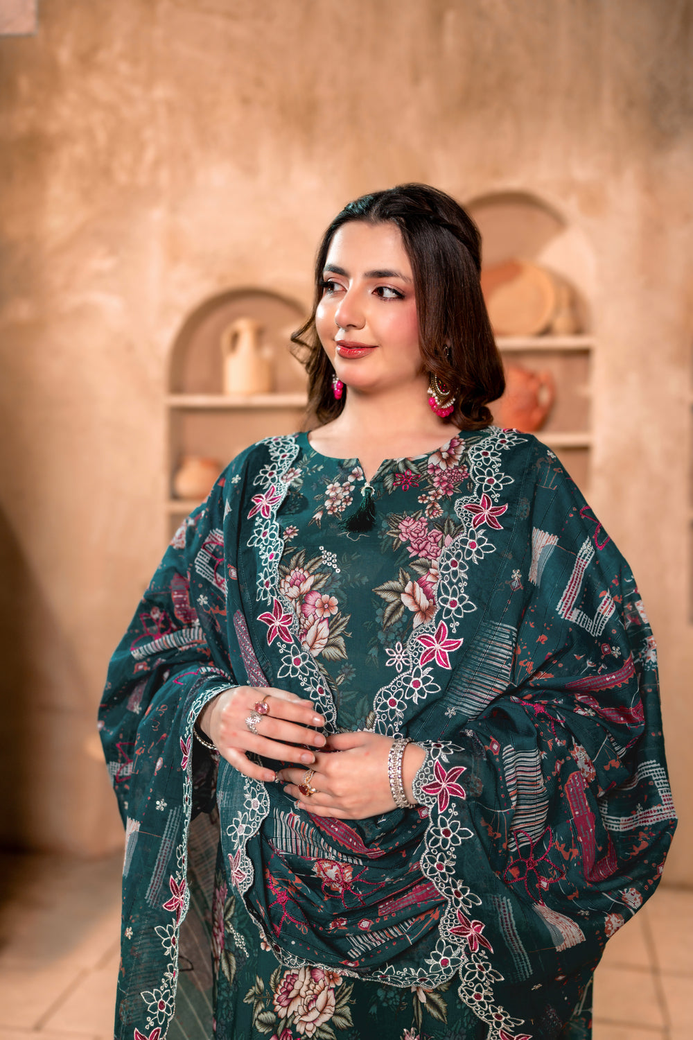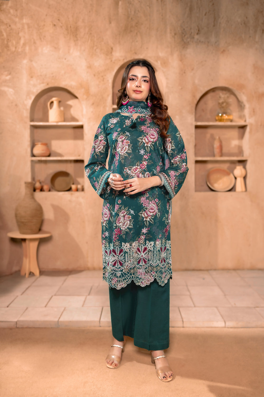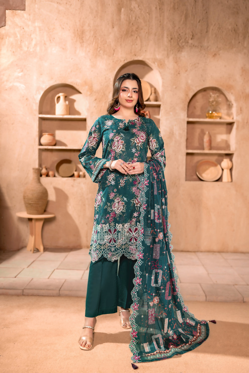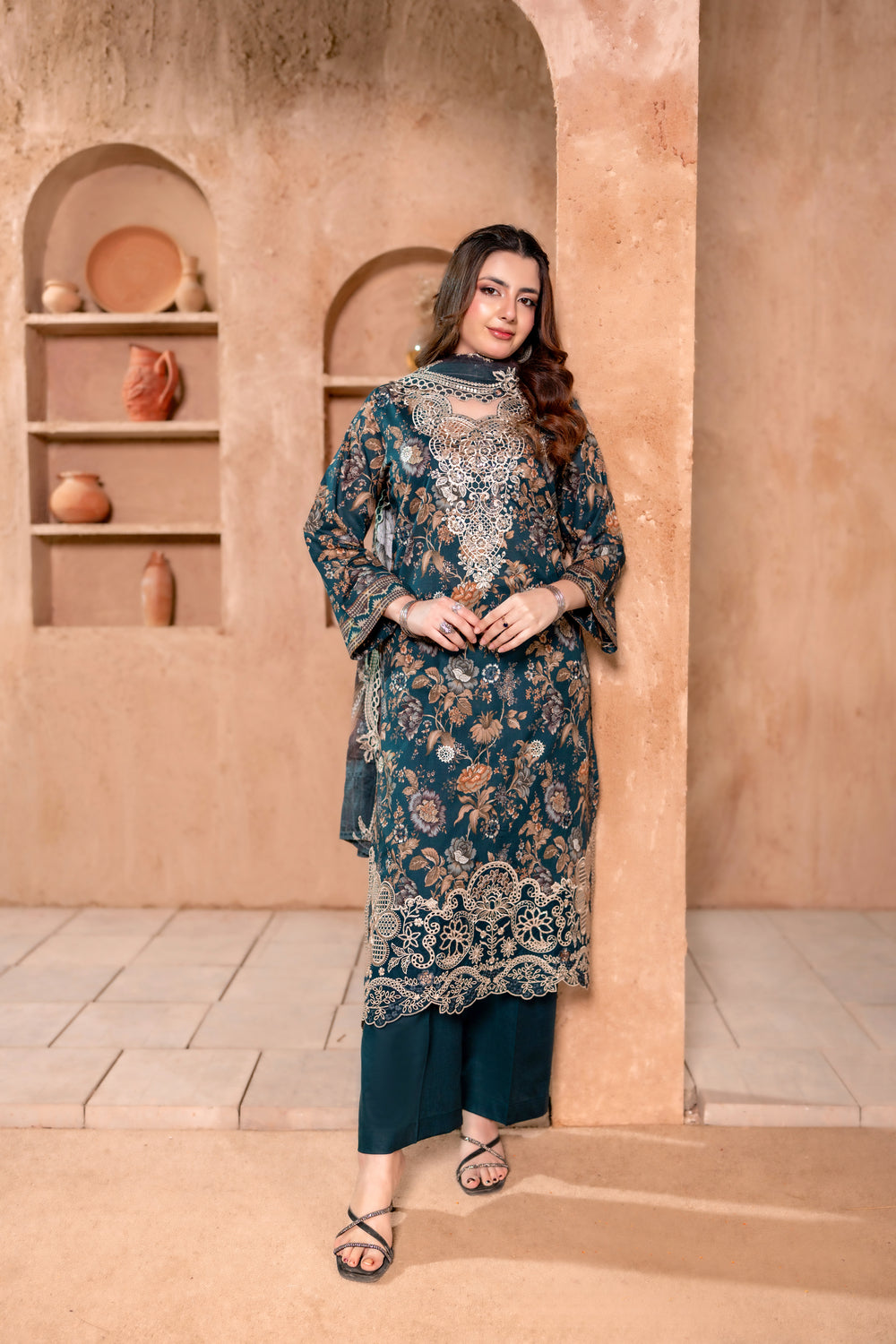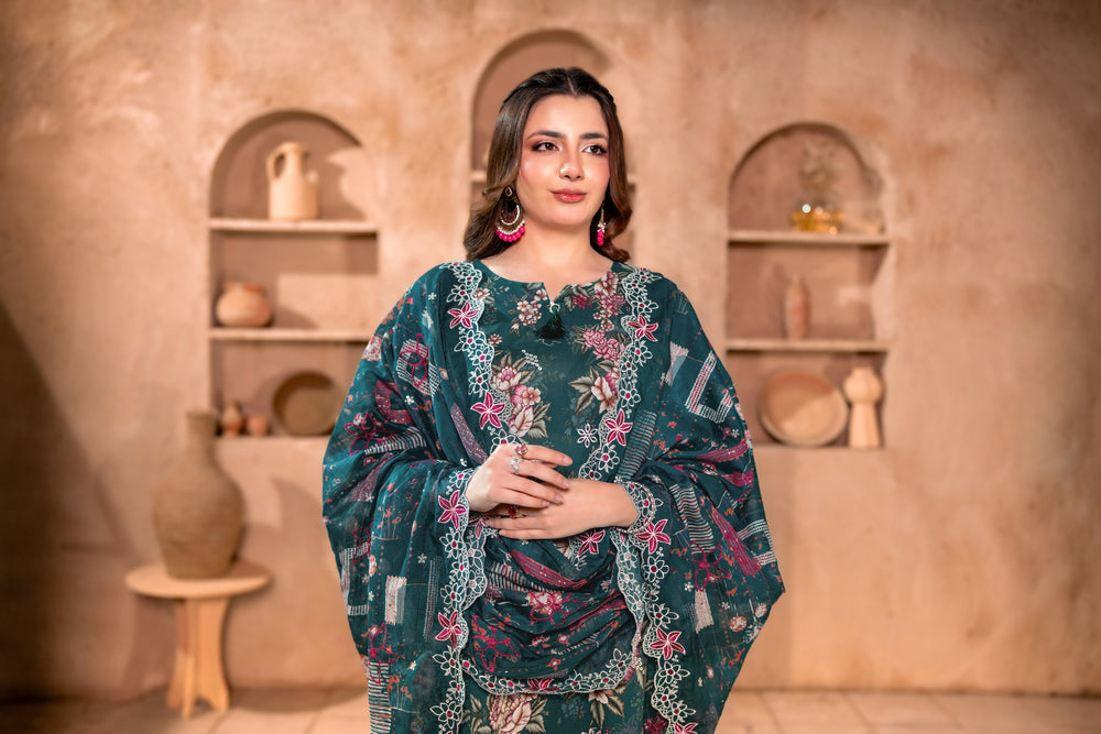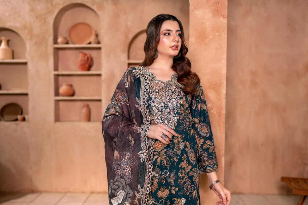 -Luxury Embroidered Printed Shirt (Including Chinkankari + Applique)