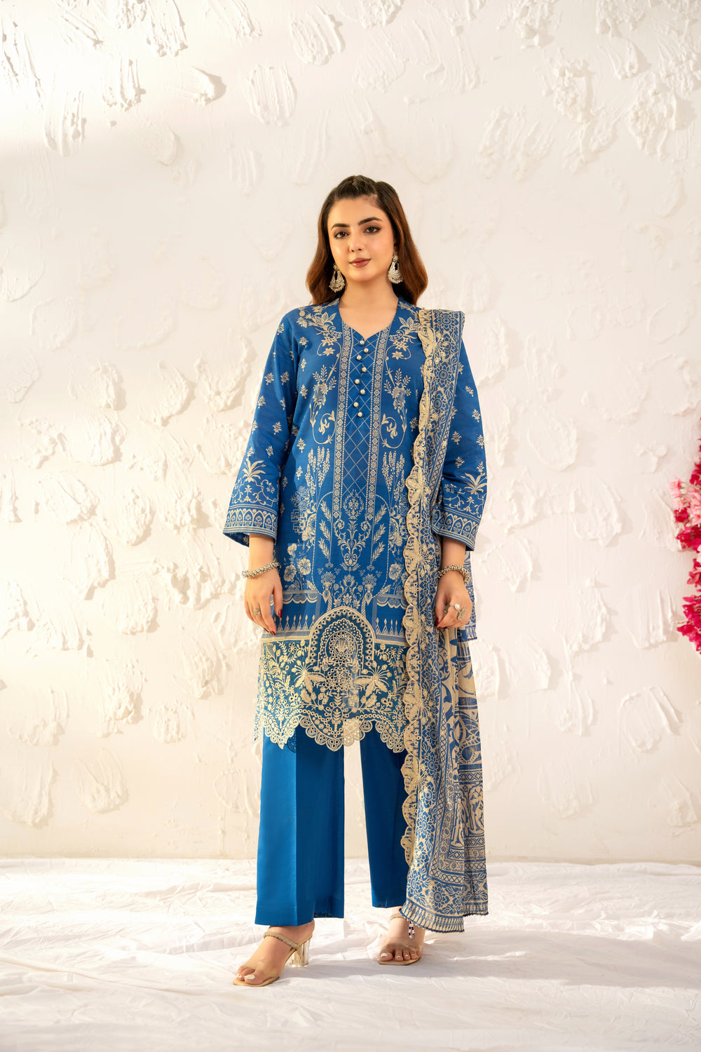 - Digital Printed Embroidered Cotton Shirt - 3.00 M