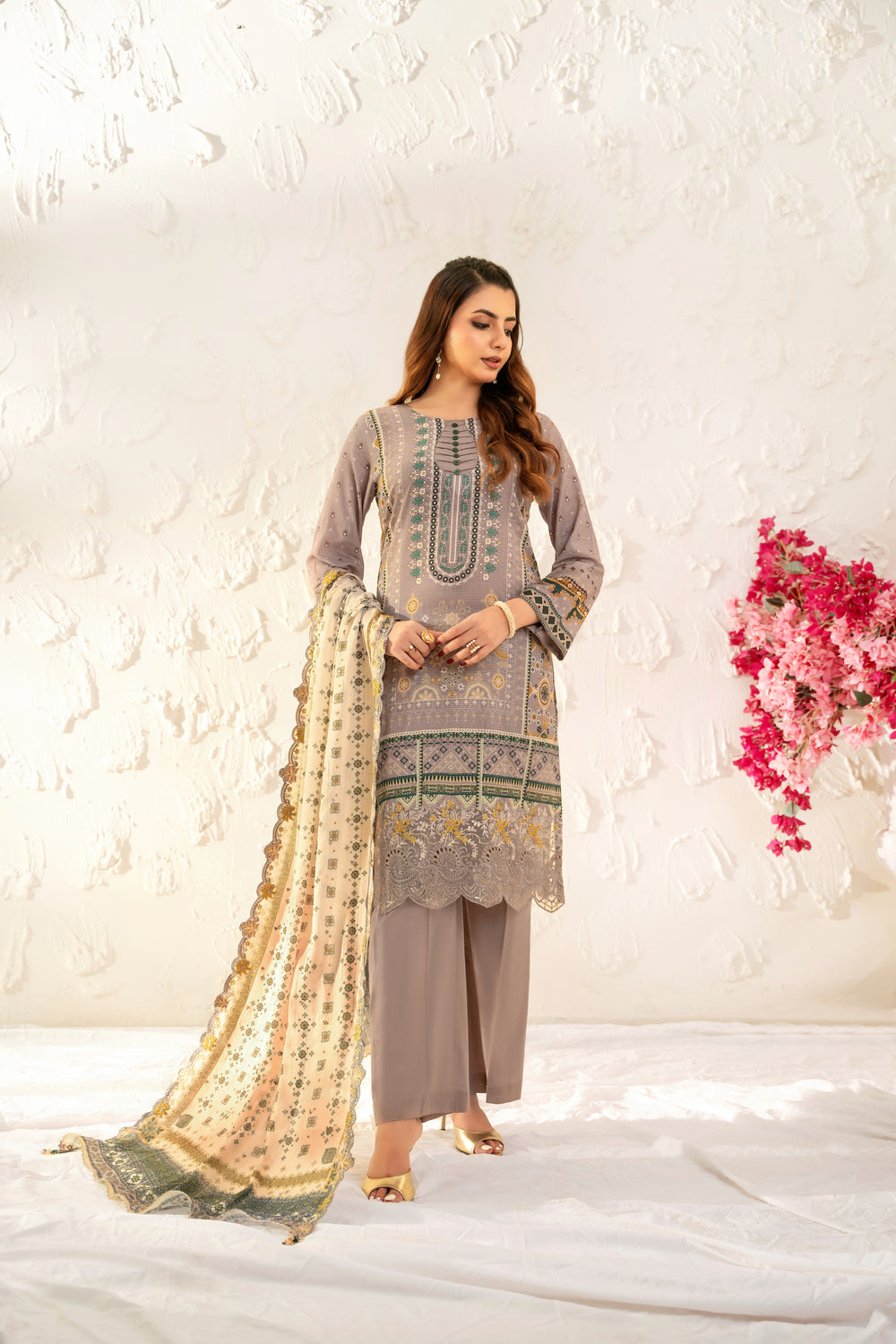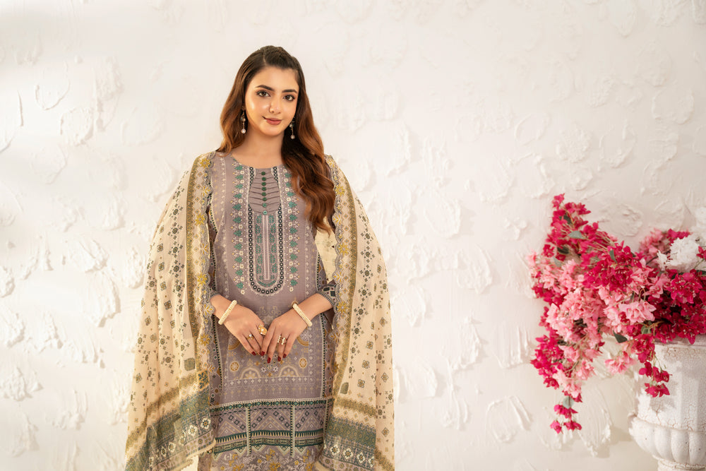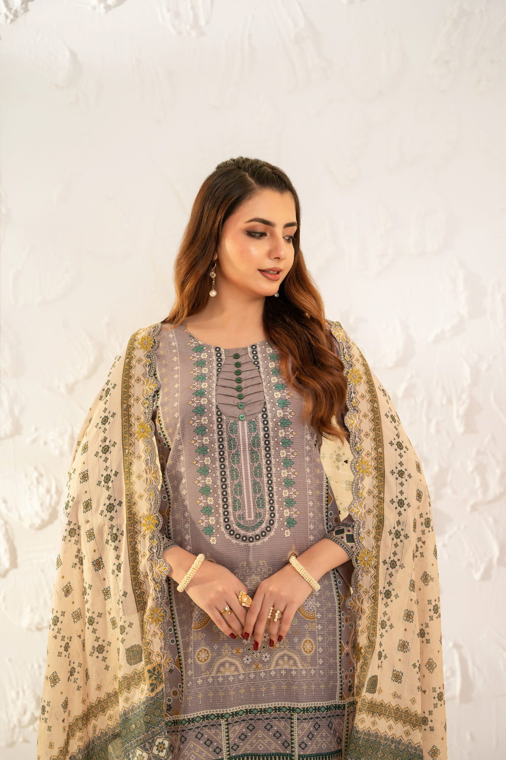 - Digital Printed Embroidered Cotton Shirt - 3.00 M