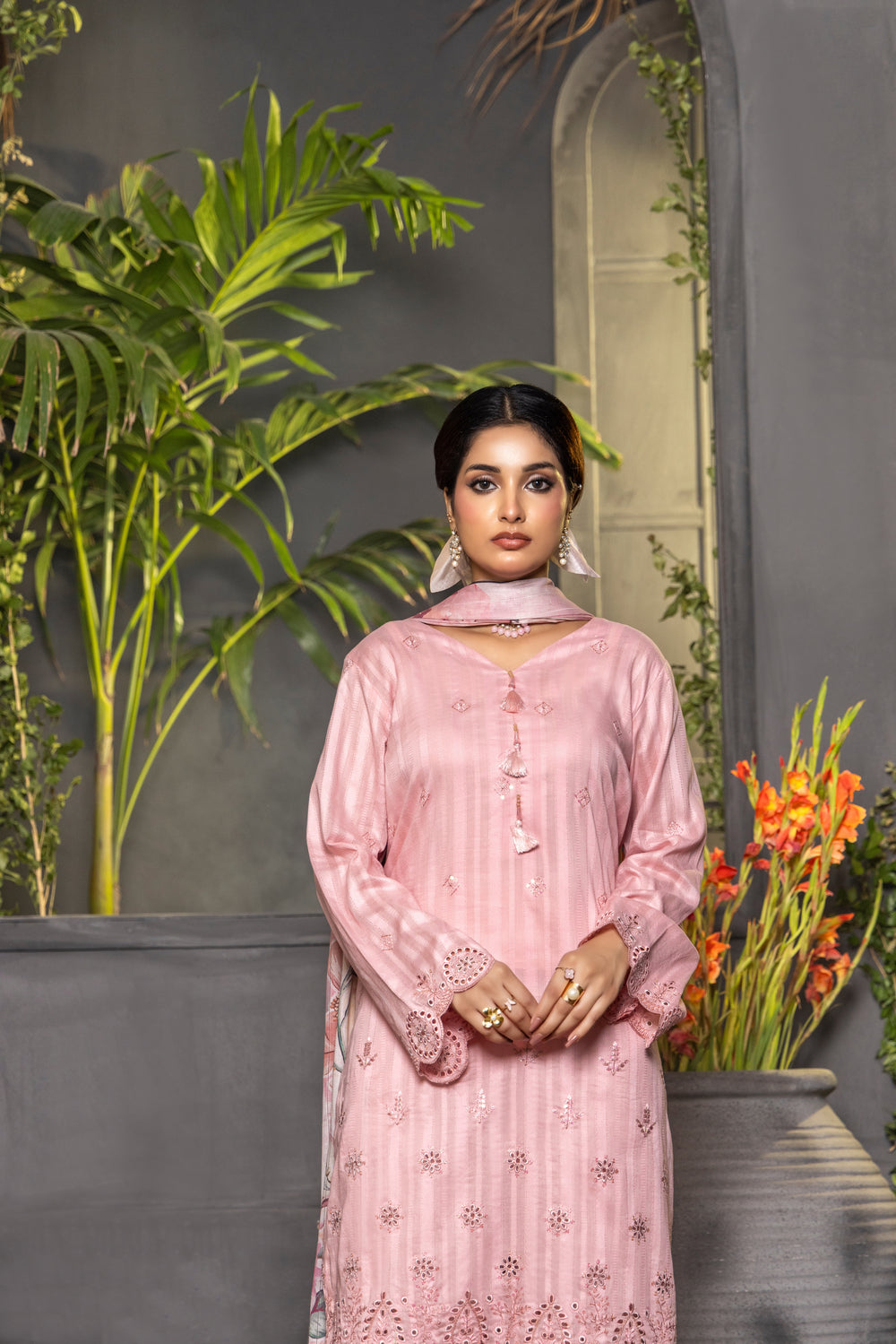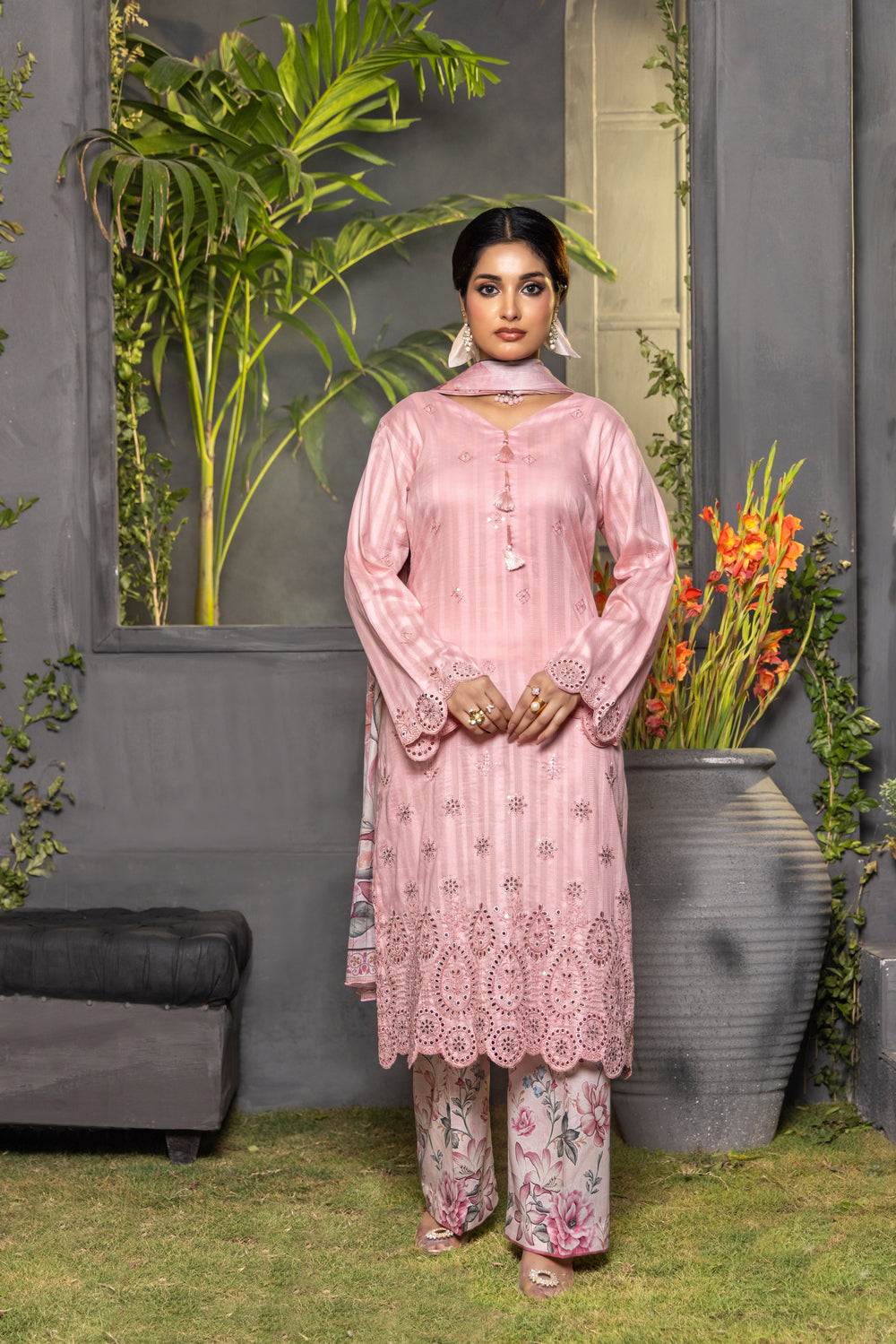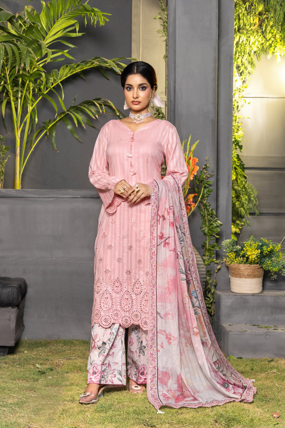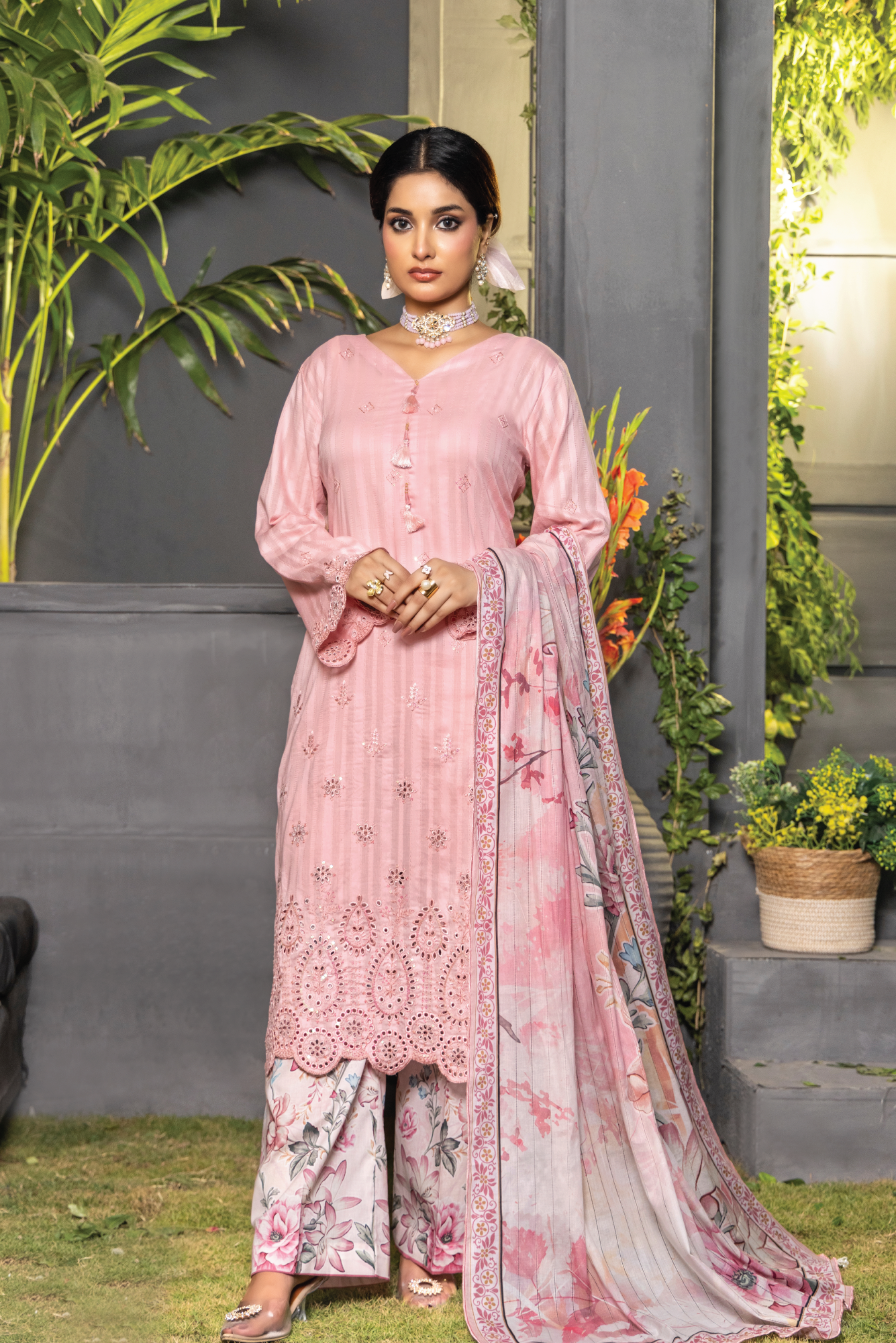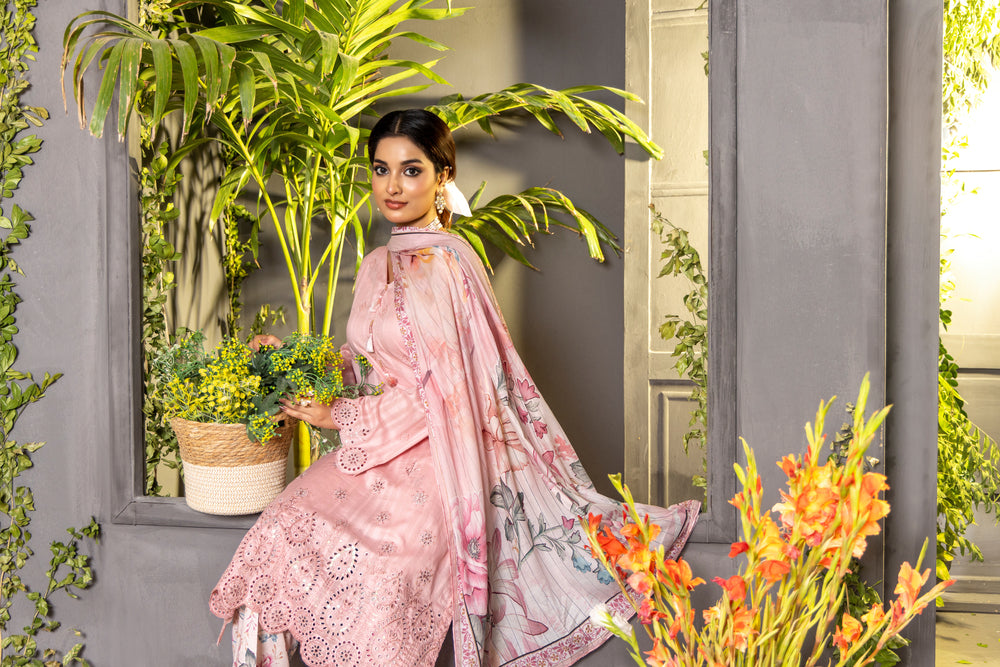 This soft blush ensemble captures romantic elegance. Its intricate detailing and pastel hues make it perfect for festive mornings or intimate celebrations.