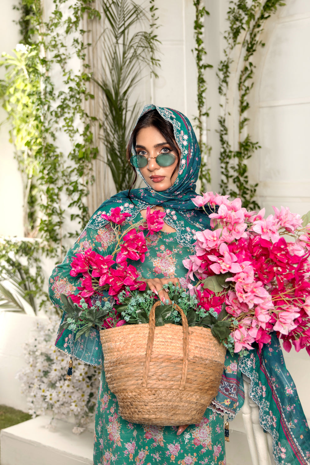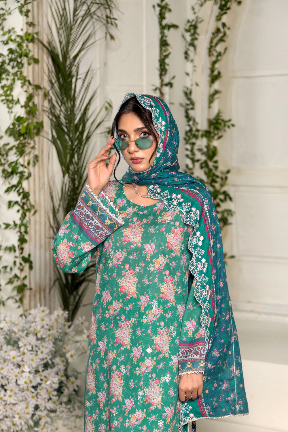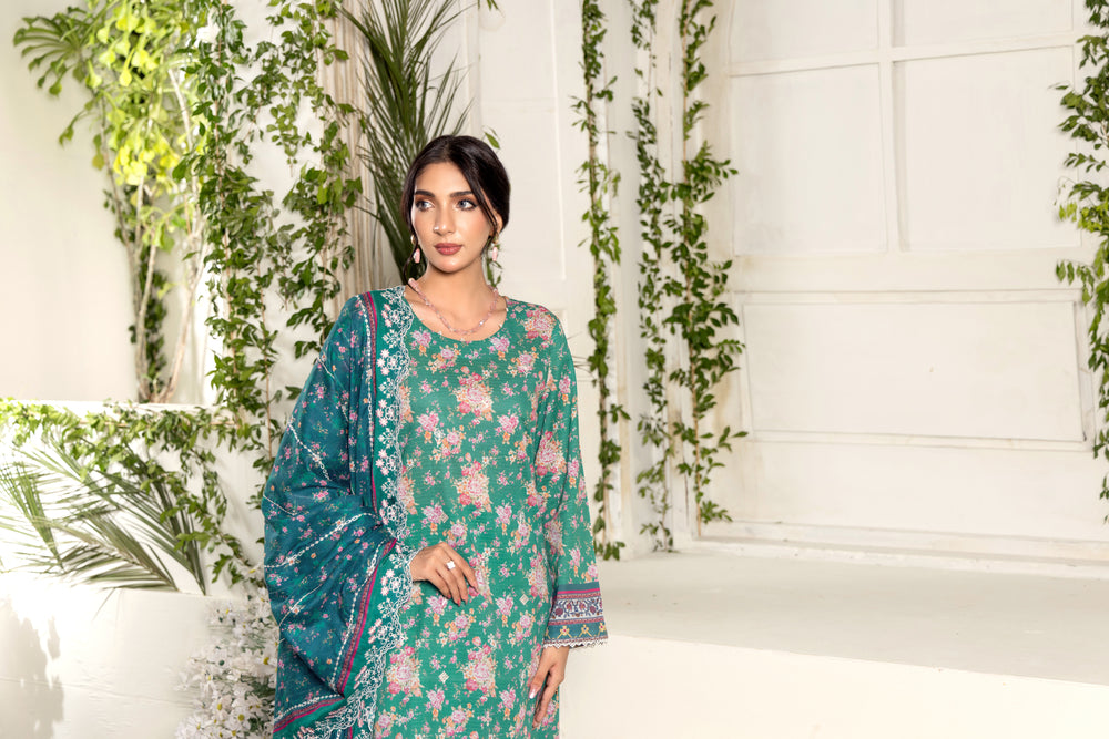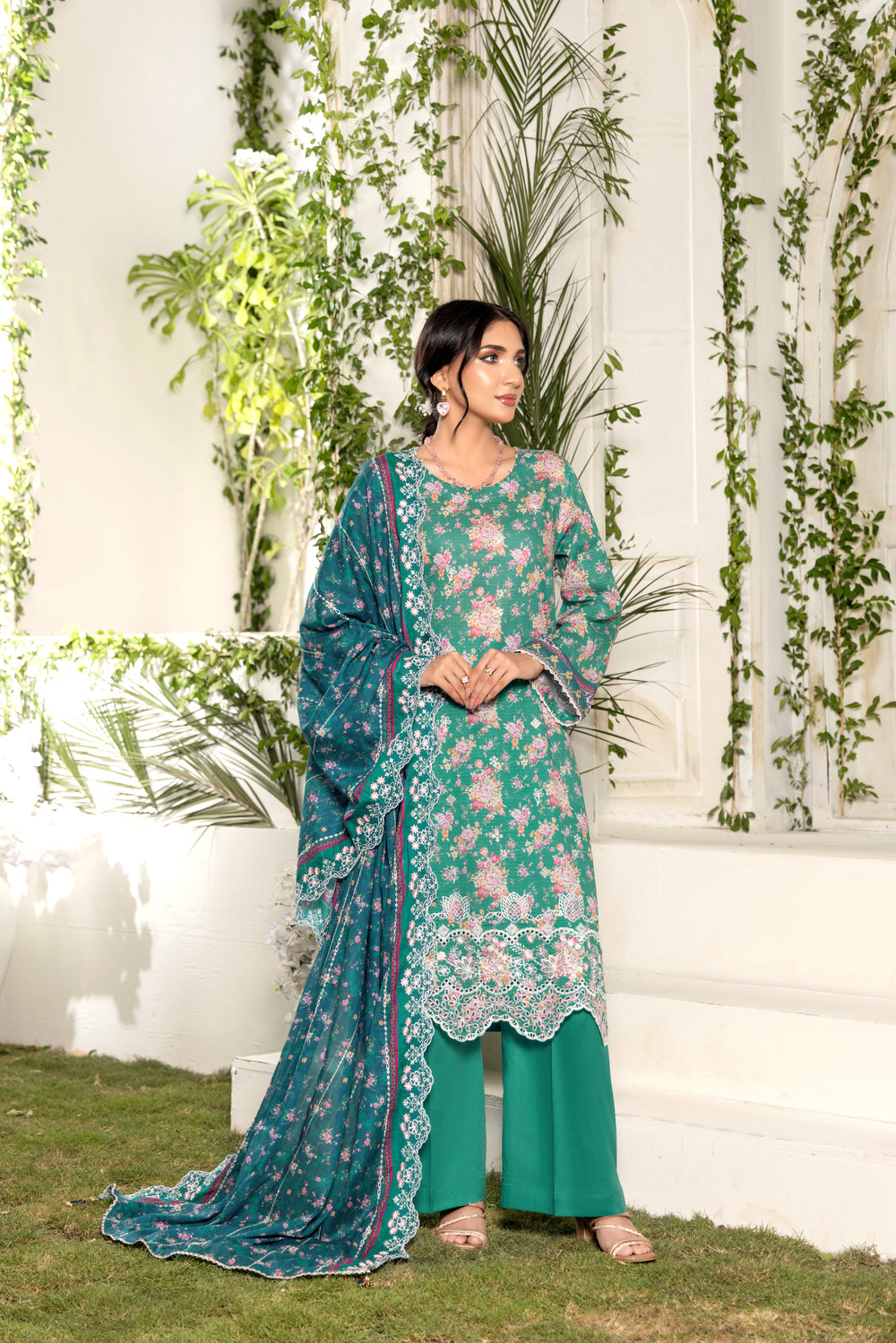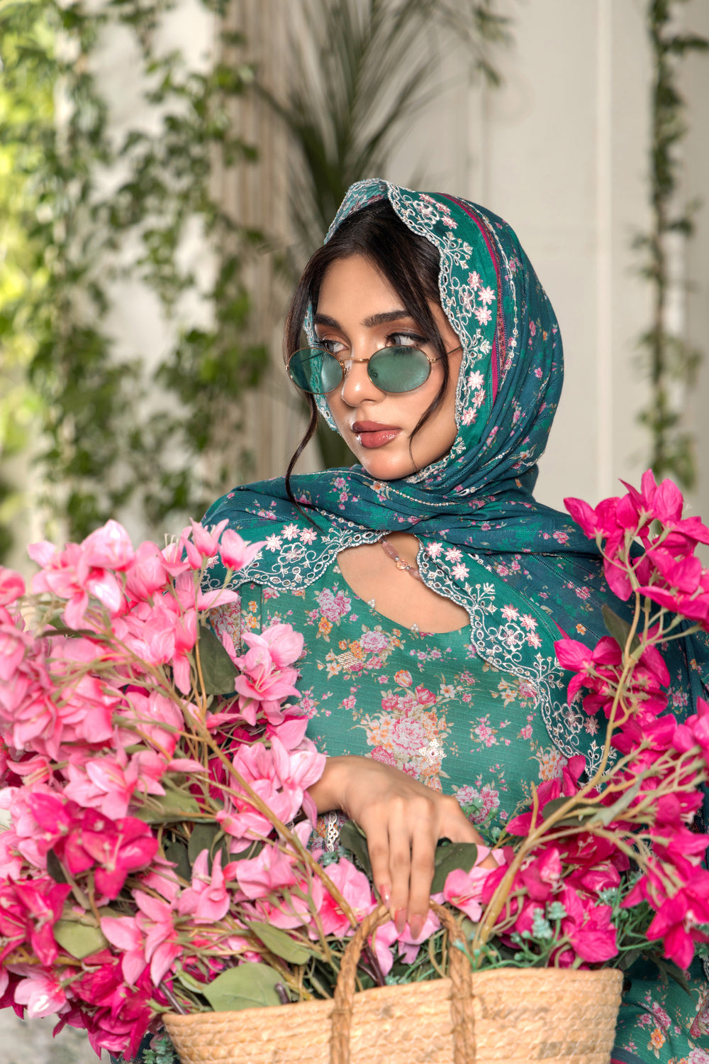 Teal green tones with contrast embroidery and dupatta — an ideal look for transitional seasons.