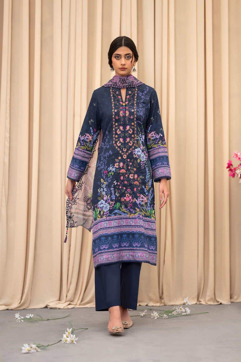 - Luxury Embroidered Printed Cotton Shirt - 3.00 M