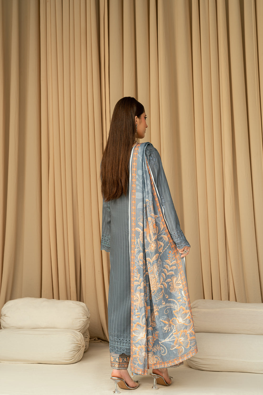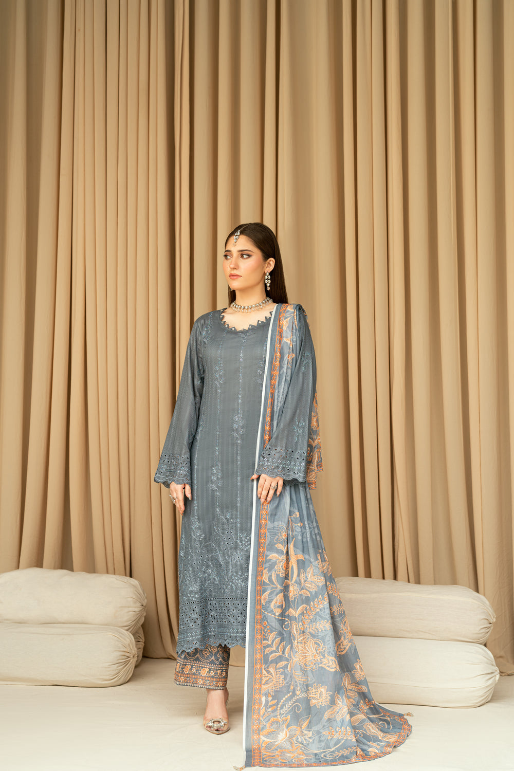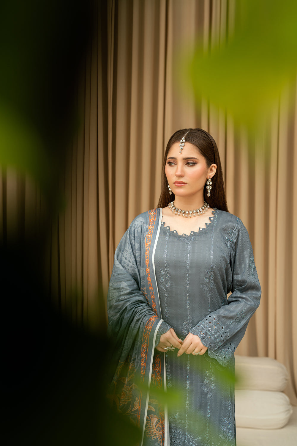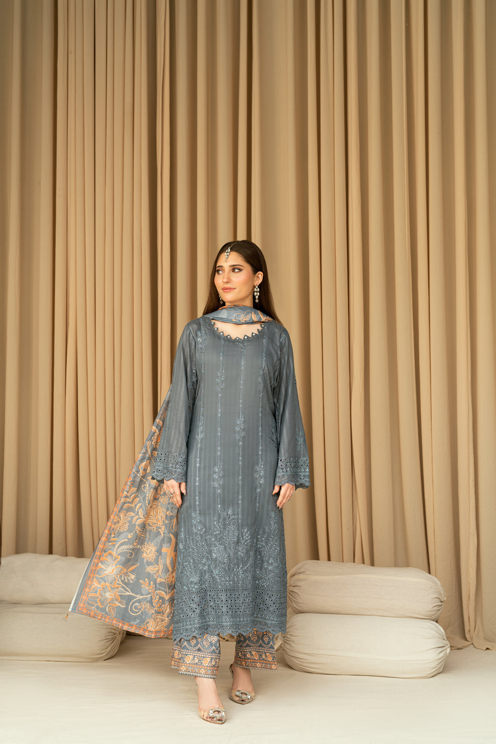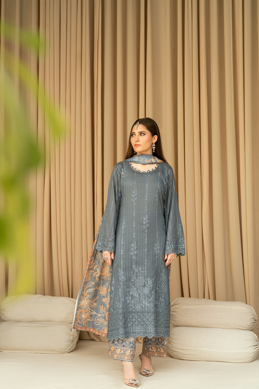 Understated yet chic, this grey embroidered ensemble is a wardrobe essential. Its minimal yet classy design makes it versatile enough for both casual and semi-formal occasions.