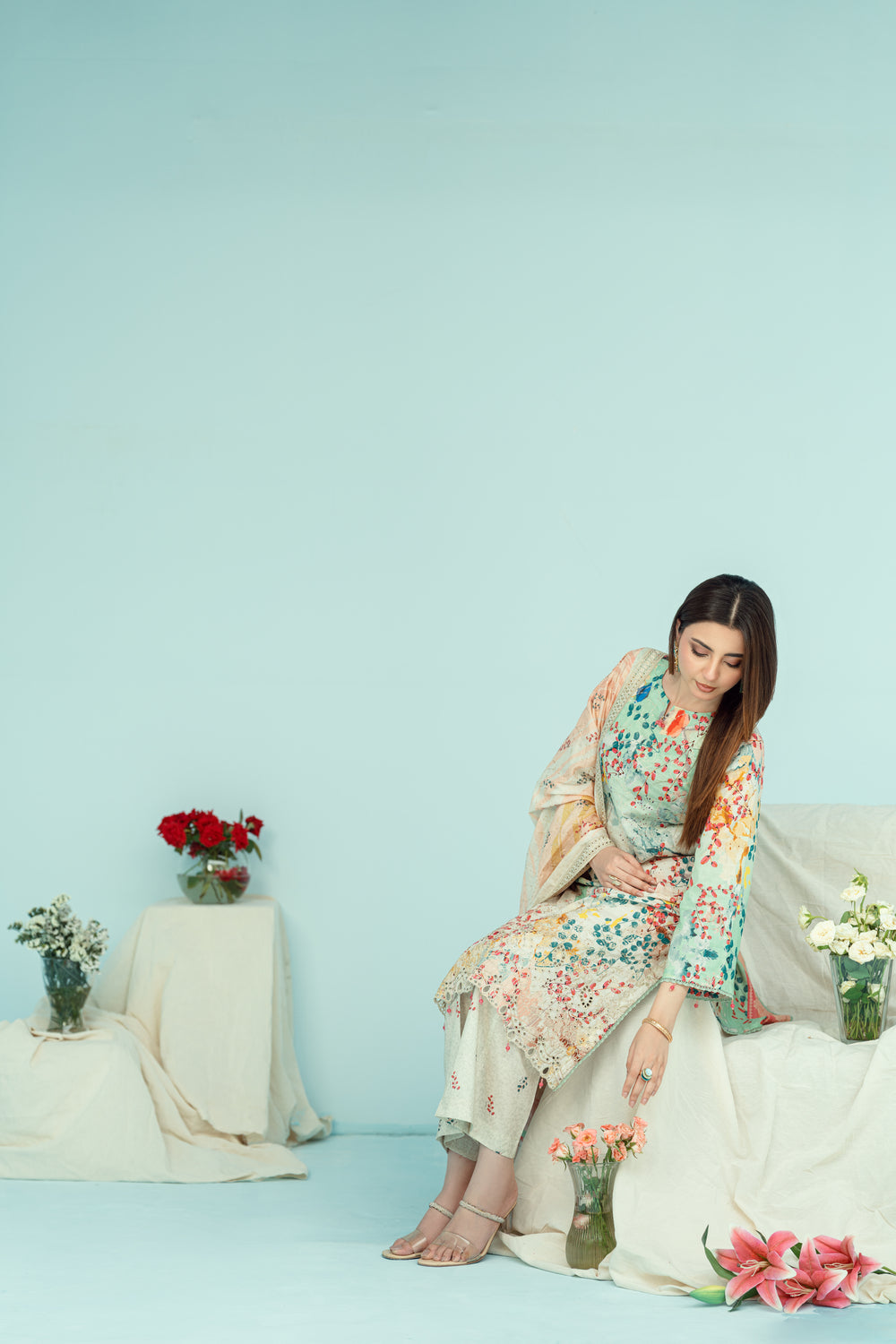 - Luxury Chikankari Embroidered Printed Lawn Shirt - 3.00 M